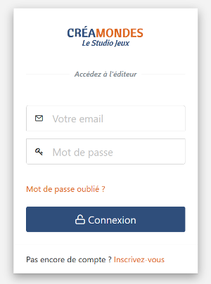 Pour vous créer gratuitement et sans engagement un compte sur Studio Jeux, c'est ici : https://games.creamondes.com/creation/inscription