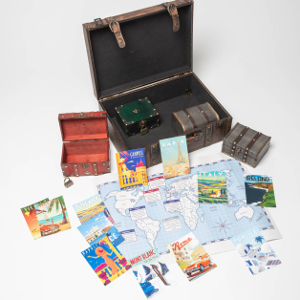 Les matériaux s'adaptent à votre budget. Par exemple la box peut être une boîte en carton simple ou être une petite valise, un coffre en bois...De même pour les contenus, cela peut aller de simples documents papier à des éléments en 3D à manipuler (cadenas, puzzles, objets...).