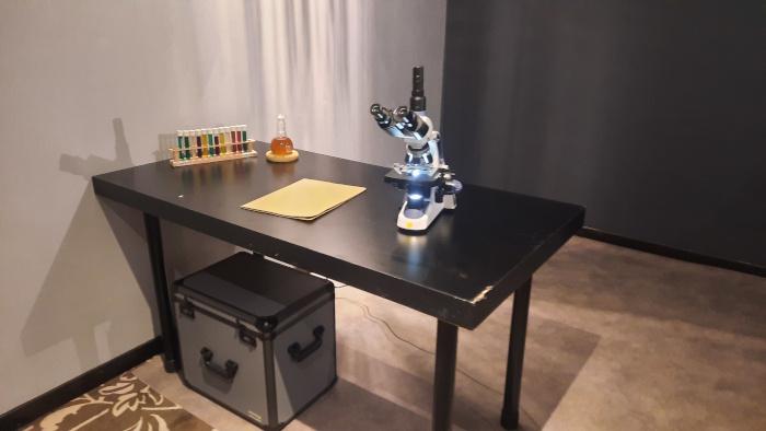 Pour proposer aux joueurs la meilleure immersion possible malgré le caractère itinérant du jeu, l’accent est mis sur la qualité des accessoires : vrai microscope, vrai matériel de laboratoire, vrai matériel de police scientifique, documents réalistes…