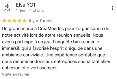 Dans ce teambuilding vous allez mener une véritable enquête policière immersive et interactive dans l'univers du cinéma. Deux comédiens animent ce jeu au décor soigné.