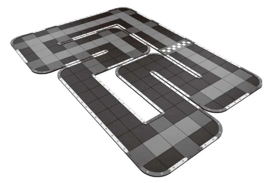 Le circuit est composé de plaques en mousse, complètement modulables pour créer différents circuits. La taille du circuit est personnalisable et s'adapte à votre espace. Il est tout à fait possible de construire des circuits de 4 * 3 m ou de 5 m x 8 m. Plus le circuit est grand, plus c'est fun !